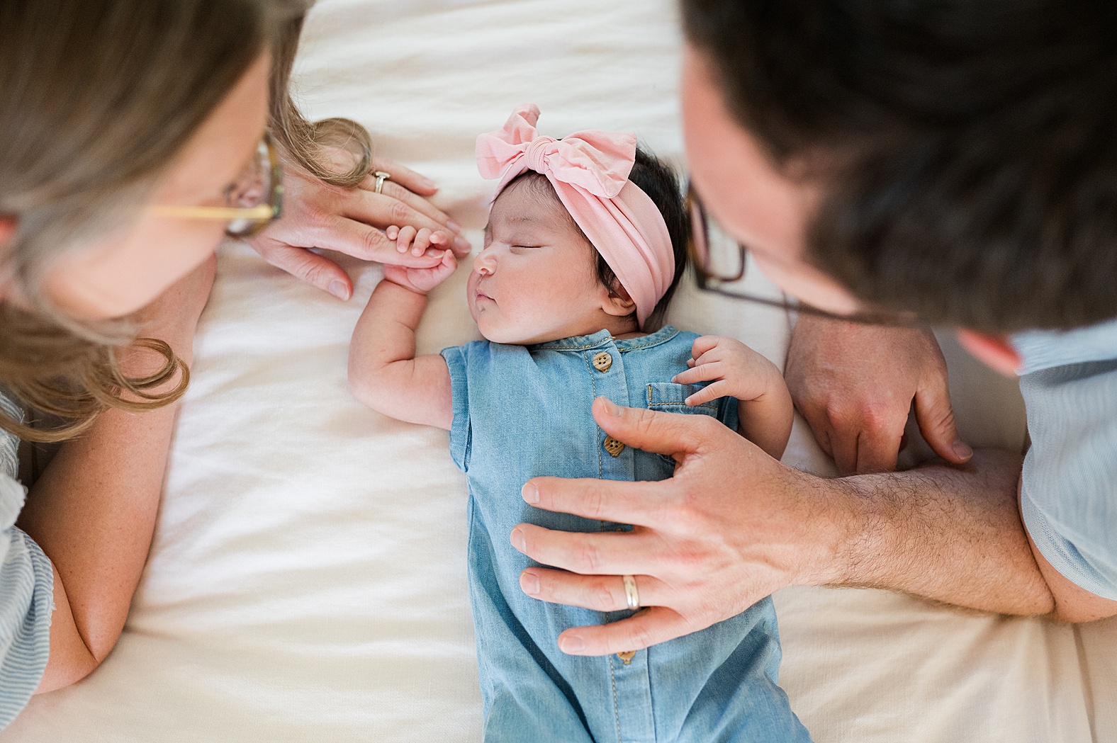 It was such a special time getting to photograph Mae and her parents as they shared her adoption story and the journey they experienced as they welcomed their adorable daughter into their world. Katie and Tony were completely smitten with Mae as she slept through all of her photos. Enjoy many of my favorites from this sweet in home newborn session.