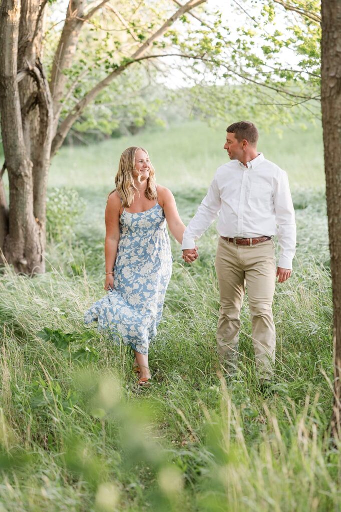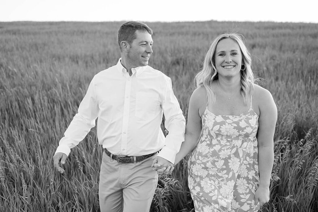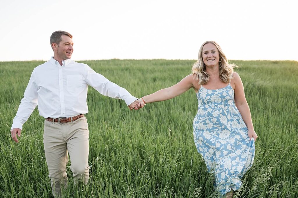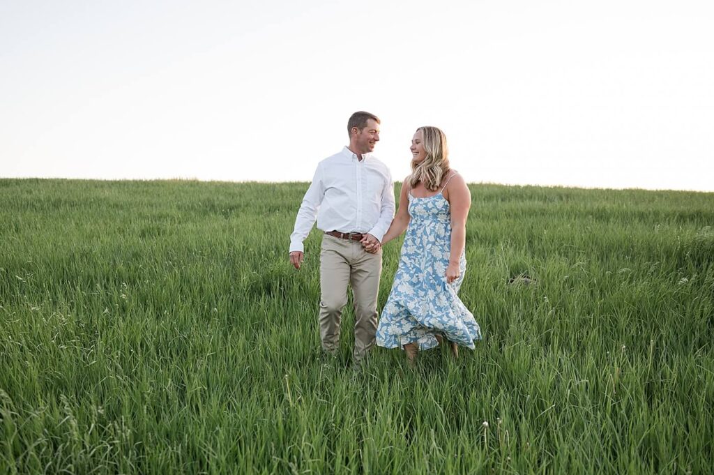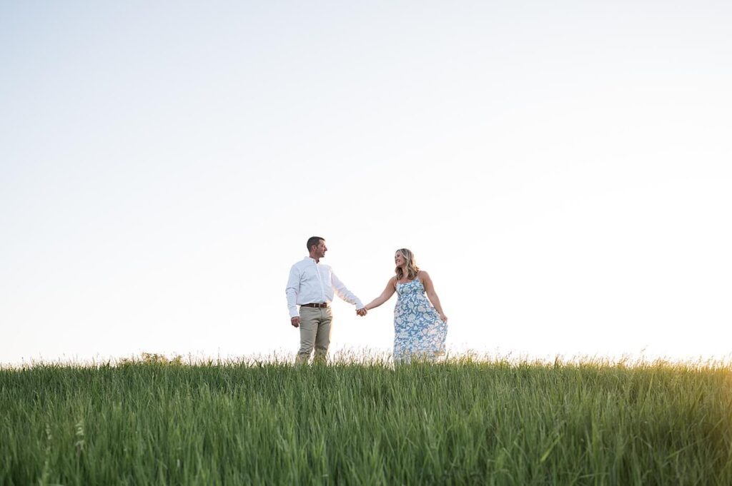 Oh, it was so much fun to photograph Steph and Tim for their engagement session. Tim owns a family pasture – so it was an easy decision to take this sweet couple’s engagement photos on their land. The same location where Tim proposed and the land where they also hosted their wedding celebration!